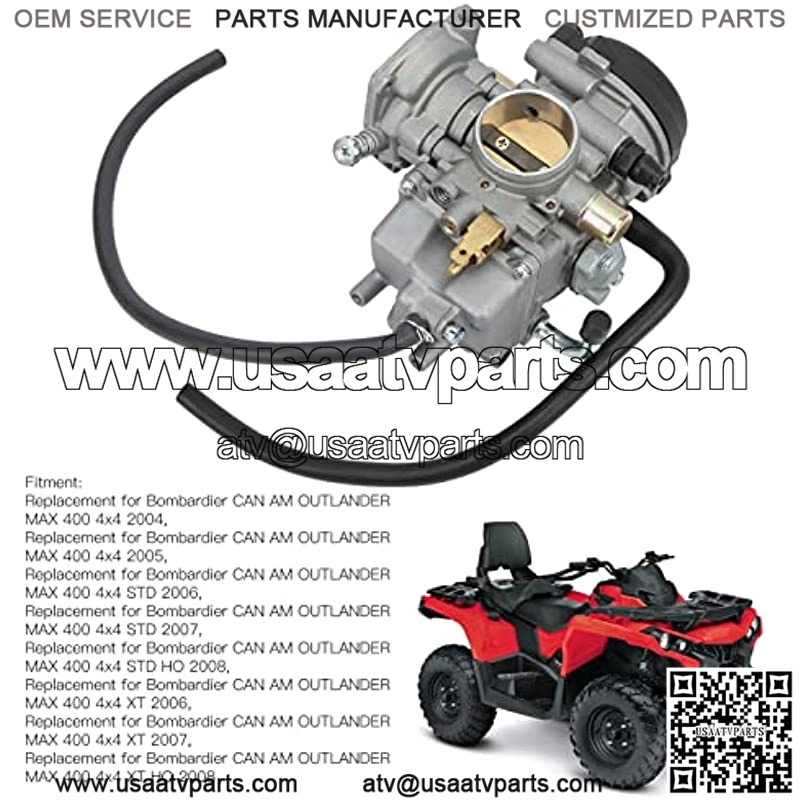 Fitment: Professional manufacturing, ATV carburetor kit is a perfect replacement for Bombardier CAN AM OUTLANDER MAX 400 4×4 2004?2008.Advantage: ATV carburetor kit helps to deliver optimum engine performance and give your motorcycle new power, keeping the engine running smoothly.Direct Replacement: replacement parts, the manufacturing conforms to the standard specification, can directly replace the broken or shabby one.High Quality Material: ATV carburetor is made of high quality metal material for maximum durability, can be used for a long time, saving your cost.High Reliability: The carburetor is produced in strict accordance with the highest production standards, with high reliability and stable performance.Product Description Specification:Item Type: ATV CarburetorMaterial: MetalFitment:Replacement for Bombardier CAN AM OUTLANDER MAX 400 4×4 2004,Replacement for Bombardier CAN AM OUTLANDER MAX 400 4×4 2005,Replacement for Bombardier CAN AM OUTLANDER MAX 400 4×4 STD 2006,Replacemen