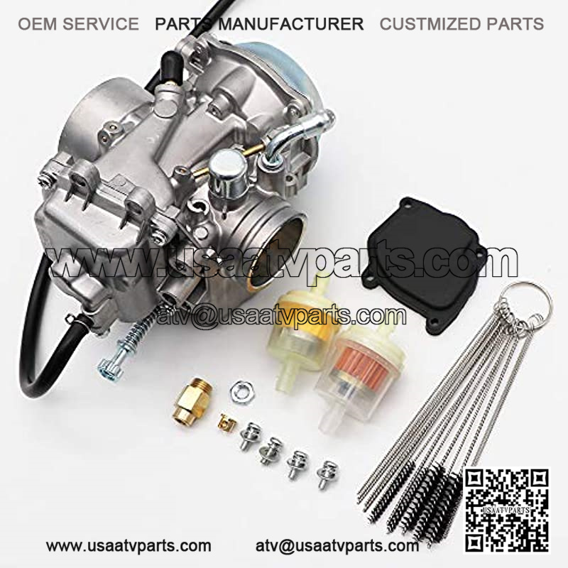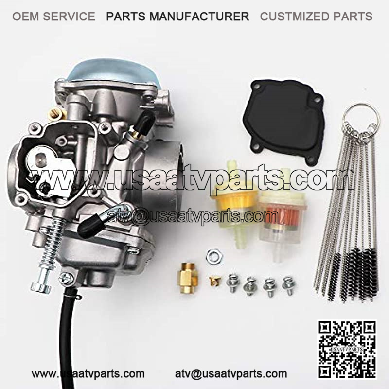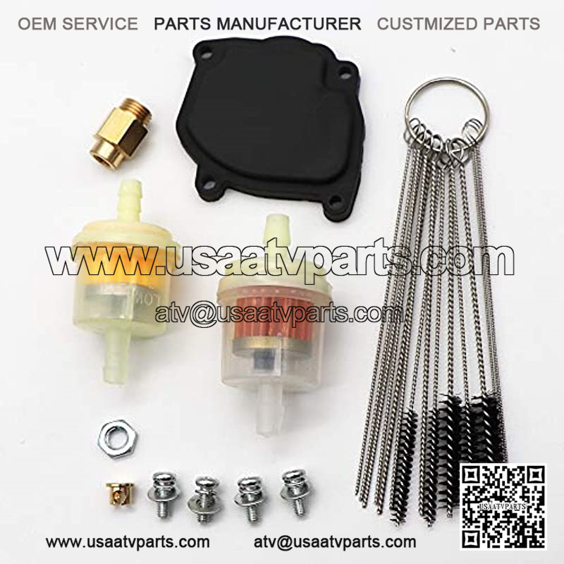 Package including: 1 X Carburetor, 1 X Throttle Base Cover, 1 X Throttle Cable Clip, 4 X Base Cover Screw 1 X Carbon Cleaner Tool Kit for Future Carburetor Maintenance use, 2 X Fuel Filters
