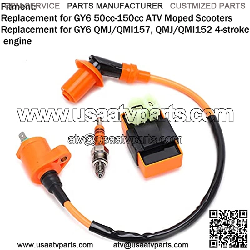 1. Includes ignition coil, CDI box and spark plug, replacement for GY6 50cc 150cc ATV Moped Scooters.