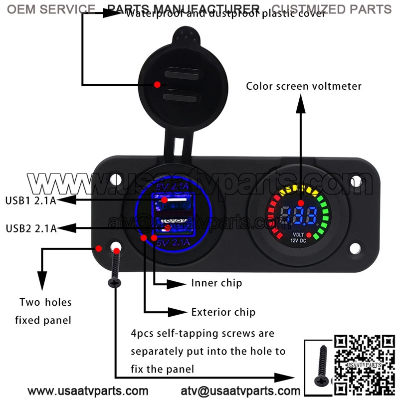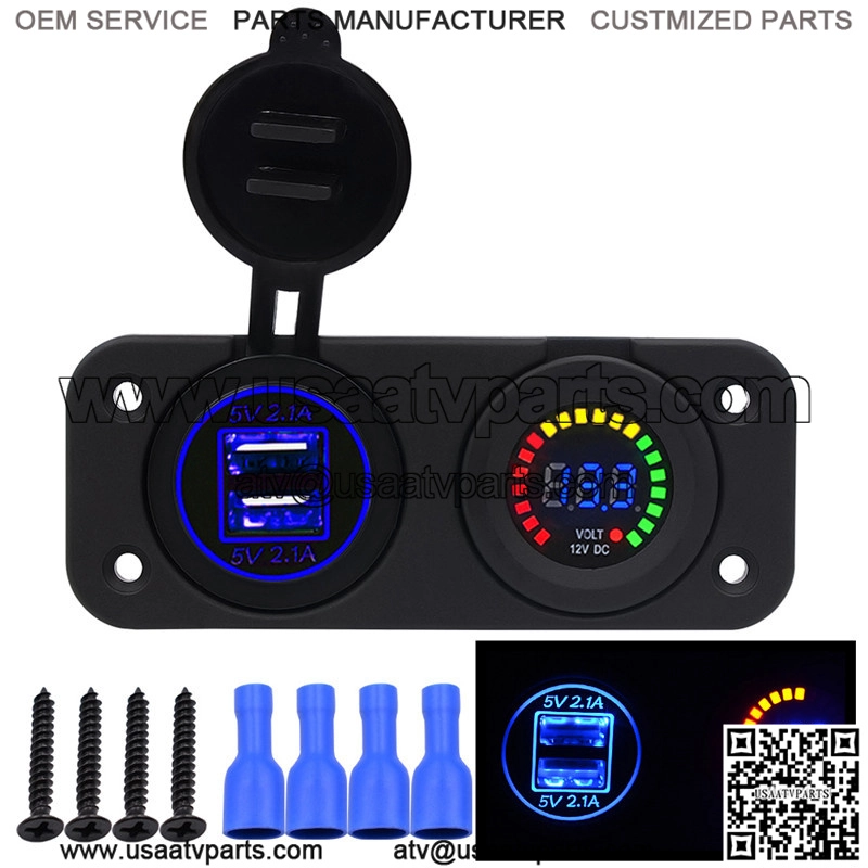 Center console 4.2A with aperture dual USB blue +12V color screen voltmeter