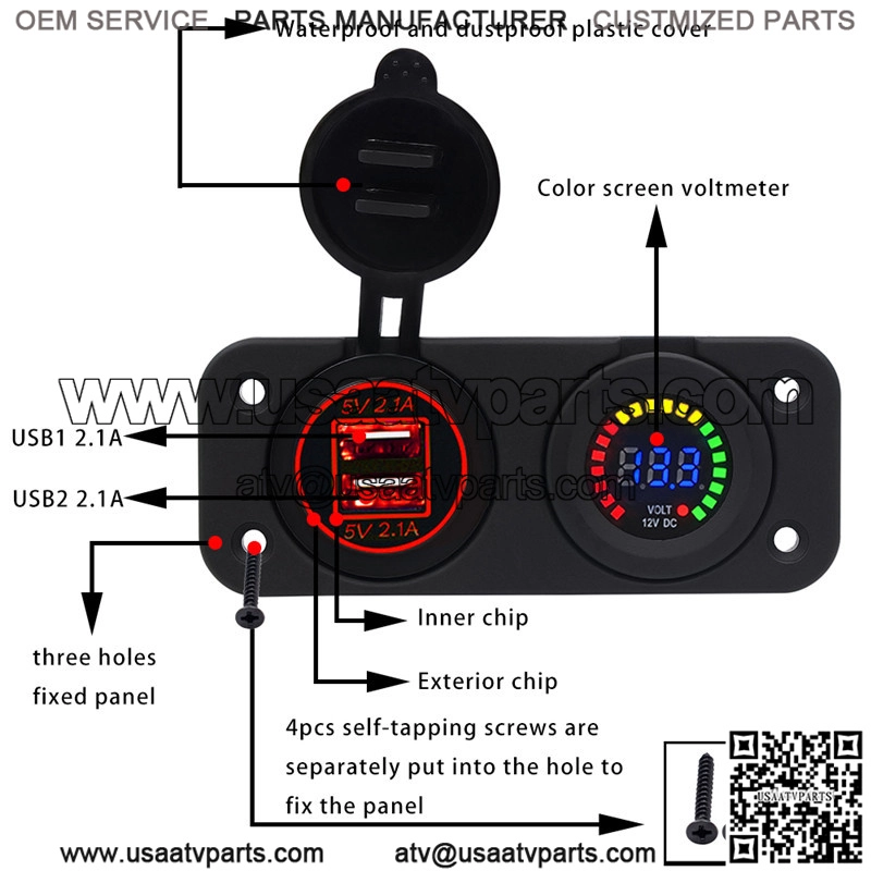 Center console 4.2A with aperture dual USB red +12V color screen voltmeter
