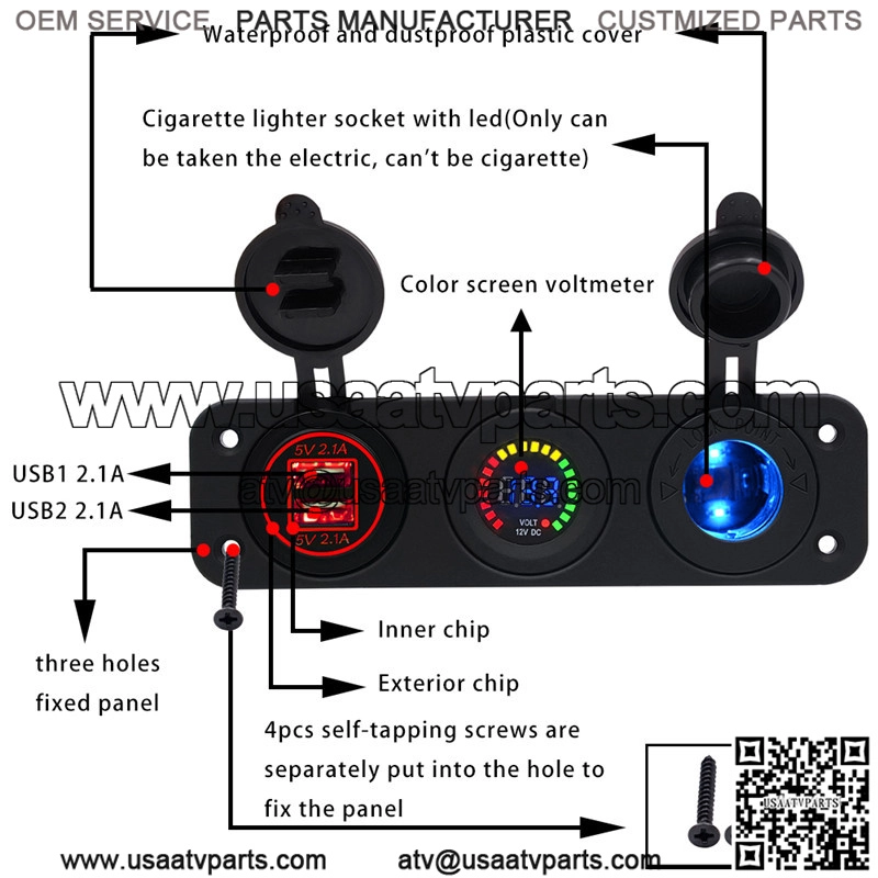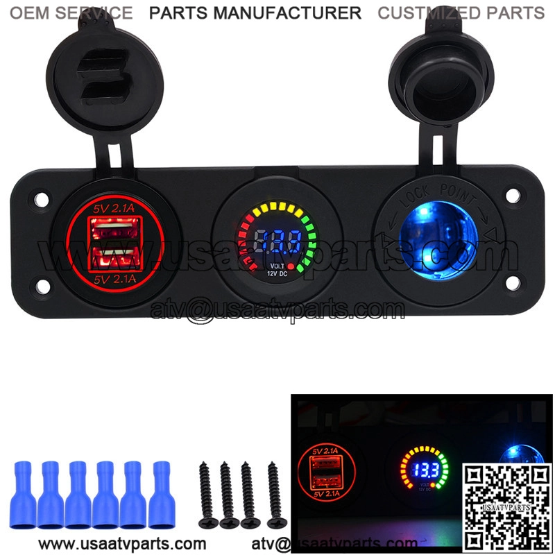 Center console 4.2A with aperture dual USB red + color screen voltmeter 12V + 12V seat with light