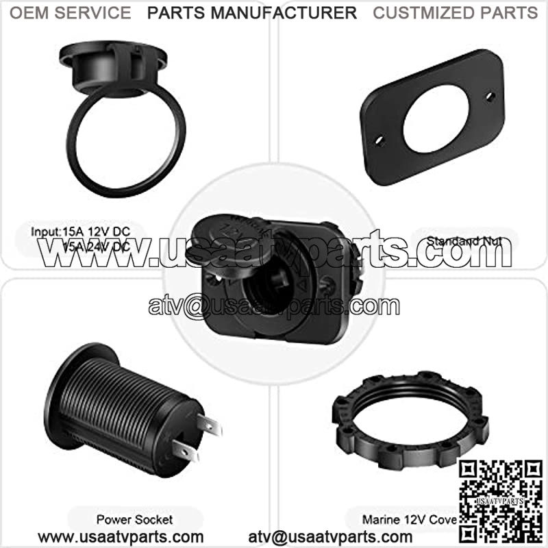 Cigarette Lighter Socket Size: 1.2 x 2.2inch??Dia.*H) 12V socket suitable for any DC 12V/24V Marine Boat motorcycle, boat, riding mower, tractor, car, etc 12V cigarette lighter socket widely to supply power for vehicle, GPS, mobile phone, camera, mp3, tablets Waterproof lid can prevent away from dust and water effectively, Each socket mounts with a retaining nut against a panel 12V outlet socket made of high quality flame retardant materials, heat resistant and wear resistant, can bear higher load capacity