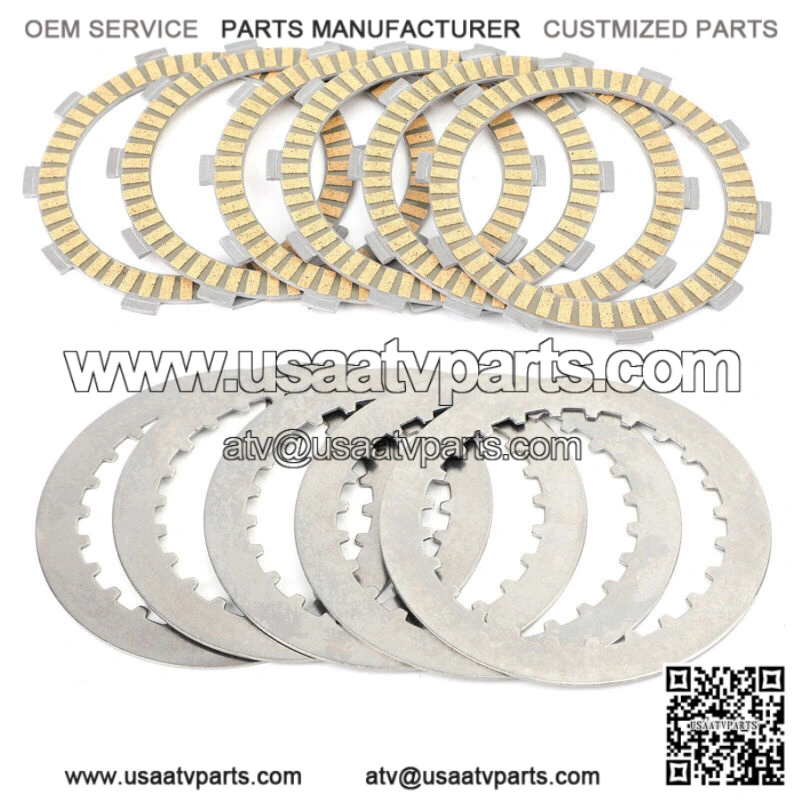 Kit includes 6 friction plates on tempered steel cores and 5 tempered steel drive plates.