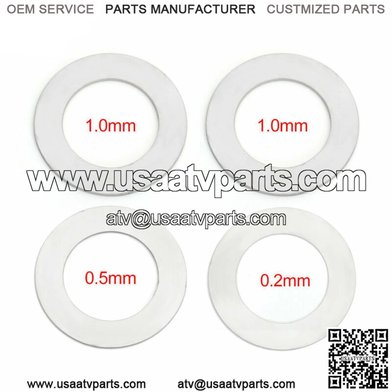 Fit For Bennche Bighorn 500, 700, 700HD, 700X-HDFit For Excalibur UTV500-4, UTV700-4, UTV700-5Fit For HiSUN 500 700 ATV/UTVFit For Massimo Alligator 500, 700, 700-4Fit For Menards Yardsport YS500, YS700Fit For Qlink FrontRunner 500 EFI, 700 EFI, 700XL EFIFit For Supermach UTV500-BF-TL, UTV700-BF-TLFit For MENARDS YARDSPORT EFI UTV 500 & 700 cc Fit For YAMAHA RHINO 660 2004-2007 Fit For YAMAHA GRIZZLY 660 2002-2008 Material: Stainless Steel(OD 30.8mm ID19.2mm)Included:2x 1.0mm thickness shim1x 0.5mm thickness shim1x 0.2mm thickness shim