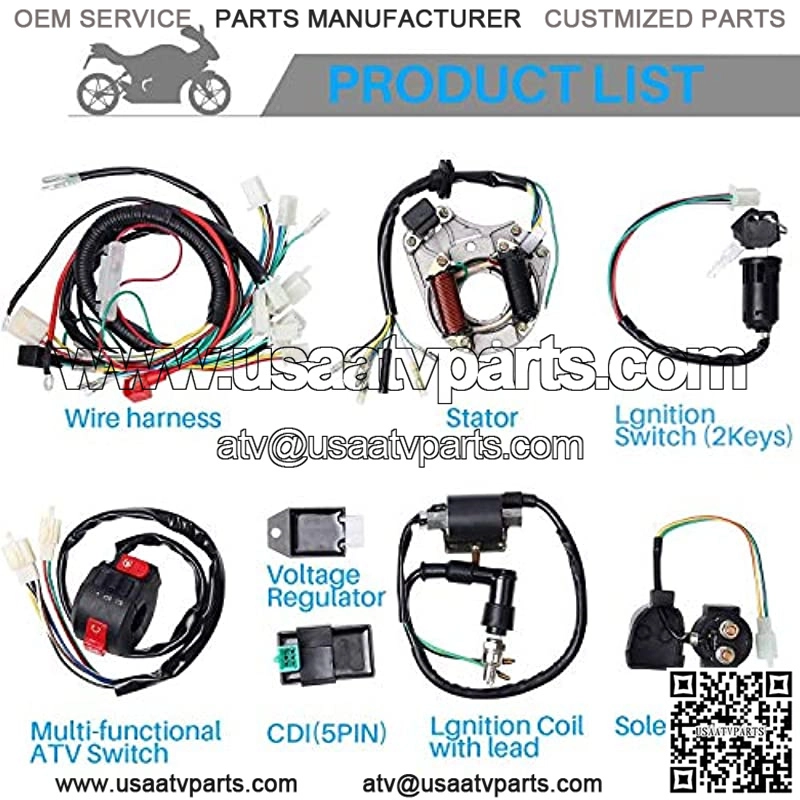 Complete Electrics Stator Coil CDI Wiring Harness for 4 Stroke ATV KLX 50cc 70cc 110cc 125cc Quad Bike Buggy Go Kart Pit Dirt Bikes