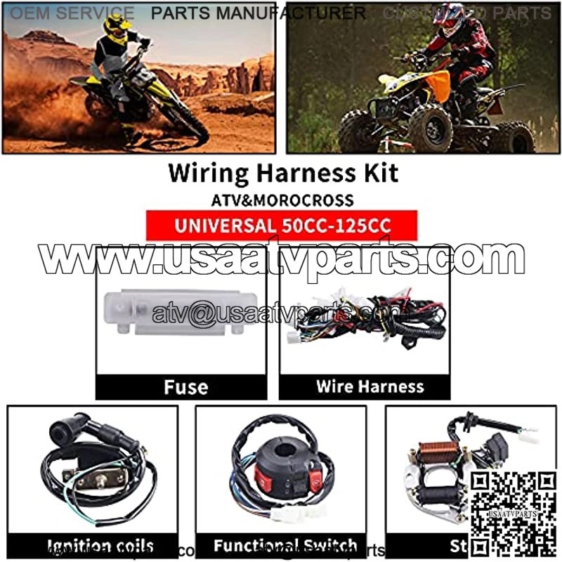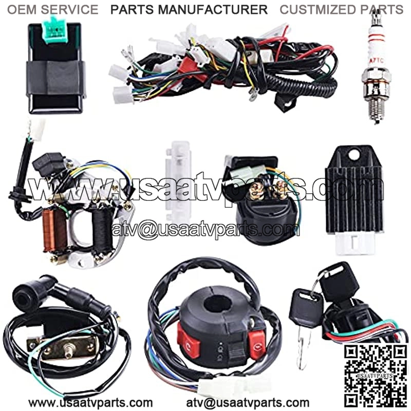 Complete Electrics Wiring Harness Stator Coil CDI Solenoid Relay Spark Plug For 4 wheelers Stroke ATV ??50cc 70cc 110cc 125cc?? Pit Quad Dirt Bike taotao Go Kart By AUTOMOTIVE