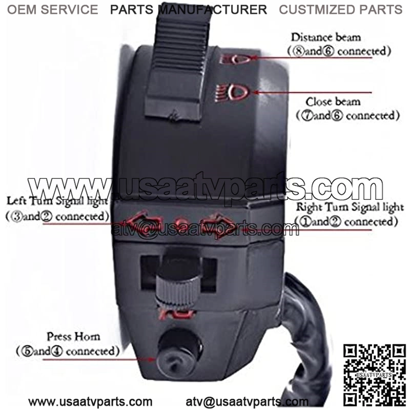 Control Turn Signal Horn Light Low High Beam Left Switch for Dirt Bike ATV Suzuki Yamaha Kawasaki Kymco Polaris Universal 520 450 530 500 wr wrf xr 600 650 dr drz 7/8inch Handlebars