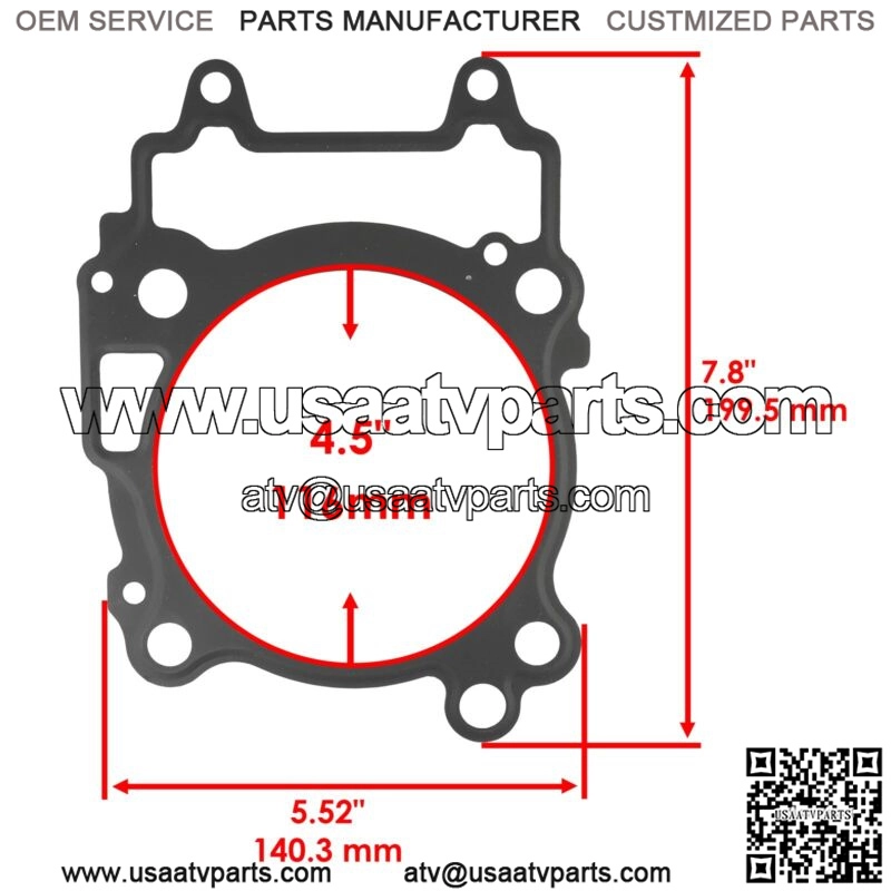 Premium Quality Replacement PartCylinder Base Gasket for Polaris Ranger Crew 570 4×4 2014-2015 / 5260934 5254903For Polaris Models:Ranger Crew 570 4×4 2014-2015Order Includes:1 x Cylinder Base Gasket: 5260934 5254903Length: 7.8″ | 199.5 mmWidth: 5.52″ | 140.3 mmInner Diameter: 4.5″ | 116.0 mm**