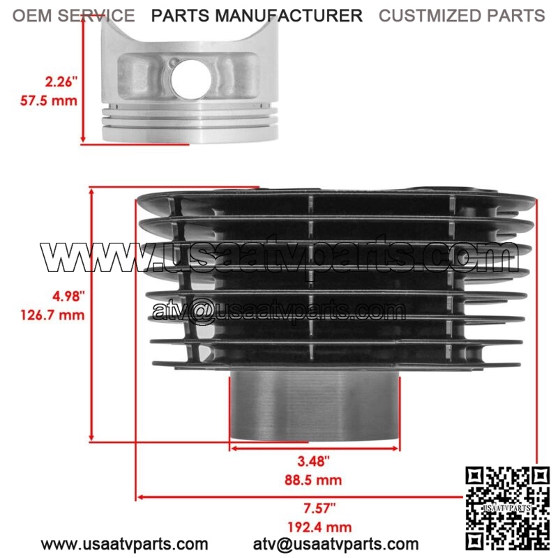 Cylinder KitFor Yamaha Models:Kodiak 400 YFM400FW 4×4 YFM400 1993-1999