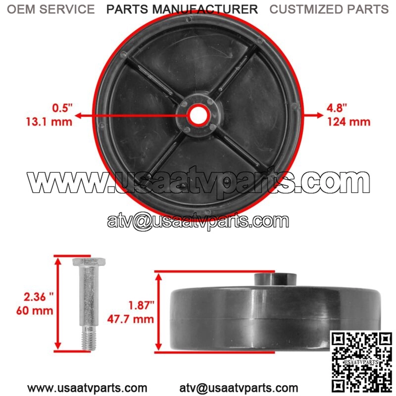 4 x Deck Wheel | 734-0973 41434 734-0796 734-973 GW-7340973 7340973 41434 7340796 734973 GW7340973Inner Diameter : 16.44mm | 0.64″Outer Diameter : 122mm | 4.80″Height : 78mm | 3.07″Bolt Height : 108mm | 4.25″