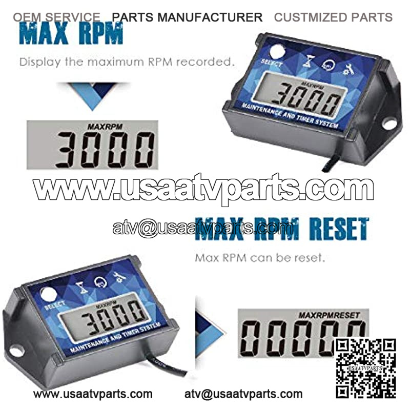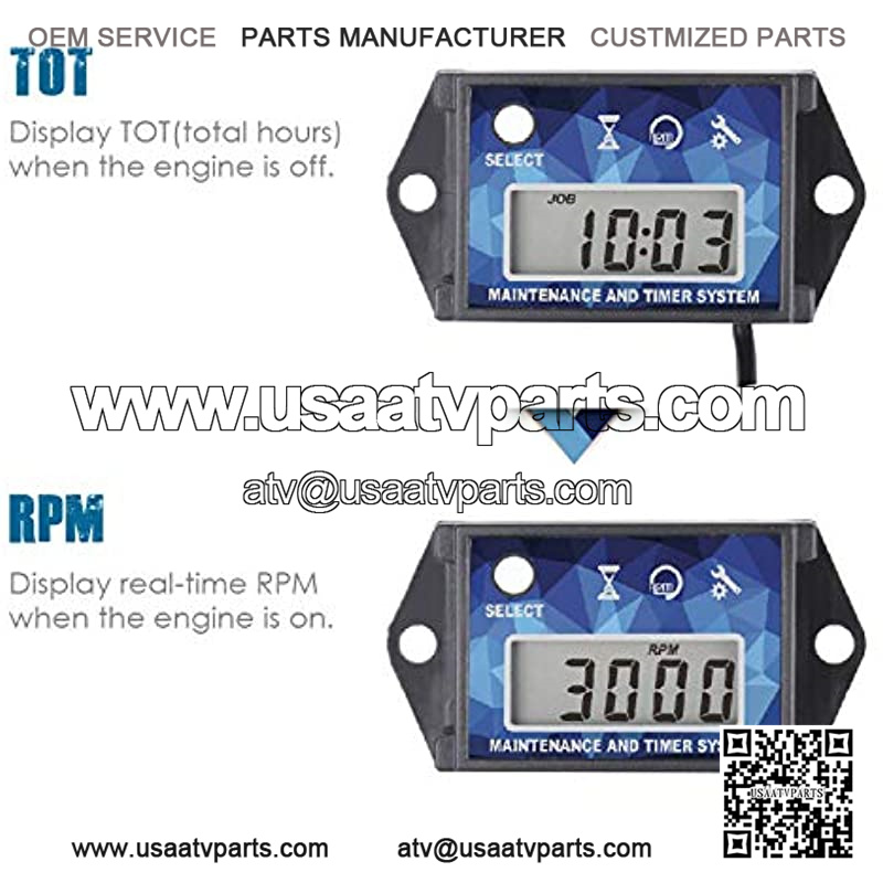 Digital Engine Hour Meter, Maintenance Reminder Tachometer for Riding Lawn Mower Tractor Generator Chainsaws Outboard Marine ATV Jetski Motorcycle Snowmobile Compressor