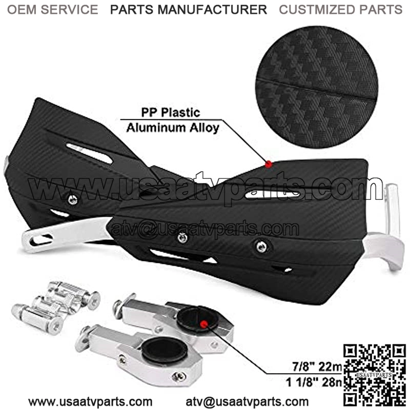 ??Original Aluminum Bar??Avoid painting shedding. Still looks new after using for long time. ??Metarial??ATV Hand Guards Use Upgraded High Impact PP Plastic and 6061-T6 Aluminum Alloy. Have higher impact resistance and strength than standard aluminum bars. More sturdy and durable. ??Fitment??Including upgraded mounting brackets. Universal for a ,,,, Dirt Bike MX Motocross Motorcycle ATV Quad whose handlebars range 7/8″ 22mm and 1 1/8″ 28mm ??Feature??RACING handguards Have Plenty of room for cables and brake lines. Efficiently Protect Hands While Driving .Reduce Your Hands Or Fingers Fatigue. This Hand guards can Protect Your Hands From Brush, Rocks, Mud And Cold wind ??AFTER SALE?? Manufacturer warranty for 180 days from date of purchase.We are committed to provide excellent customer service,If you have any questions,please contact us.We will try our best to solve your problem.