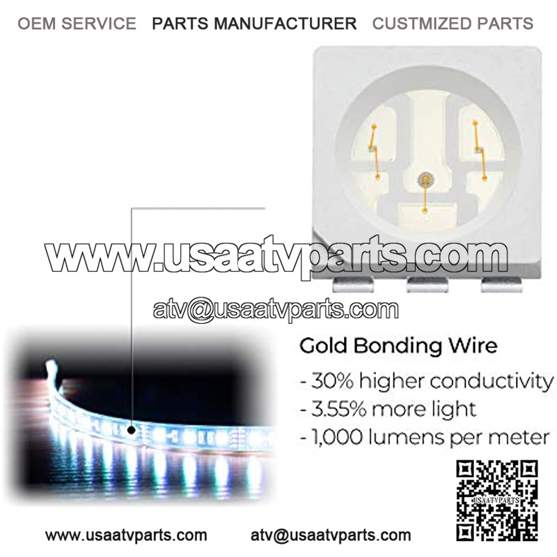 ?Maximum Brightness: LEDs with gold bonding wires ?C 30% higher electrical conductivity, 3.55% more light than the cost-effective material copper; 60 LEDs per meter, up to 1,000 Lumens per meter.