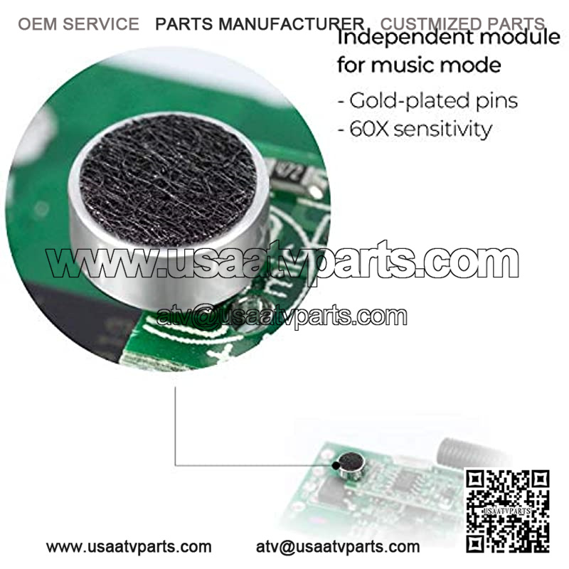 ?Music Mode: An independent microphone in the control box, gold-plated pins, a 60X sensitivity, beautifully follows the rhythms of your music.