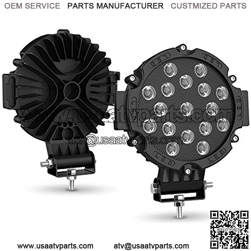 SUPER BRIGHT: The 7in & 5100LM/PCS round work light very bright to illuminate your road in the darkness and see forward road clearly, offer you a more safe and comfortable driving experience. IP 68 Rating: IP68 rated waterproof & dustproof, durable enough to withstand any harsh environments. Long Lifespan: Full aluminum housing , Radial heat sink fins with saw tooth surface produce dual radiation area for faster cooling rate, extend the lifespan to over 50,000 hours. Universal Light Bar: 7 inch LED Light pods was designed to withstand any condition, Bottom Adjustable mounting brackets are convenient and easy to install. Package Included:2pcs 51w LED light bar, 2sets of Mounting brackets, 1pcs installation instruction.