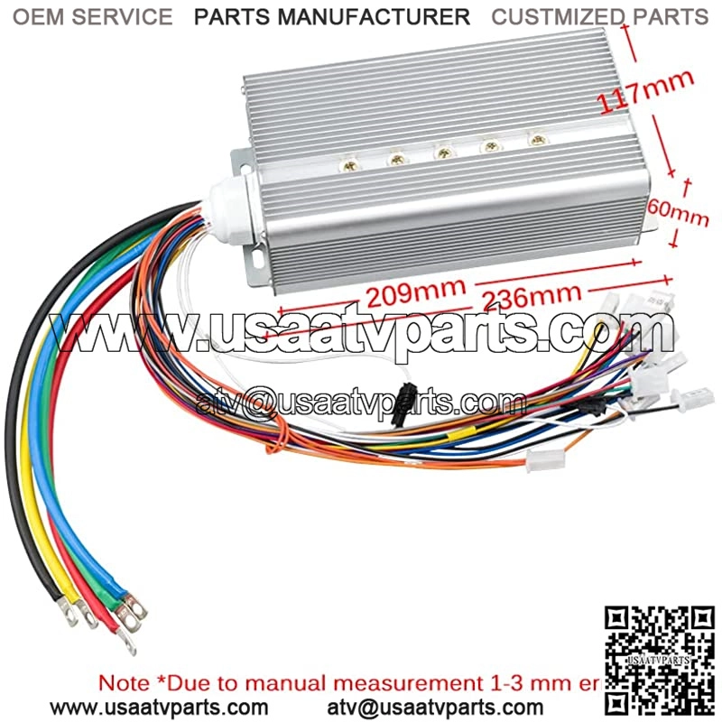 Brushless Controller: 48 Volt, 2000 Watt, 45 Amp, 24 Mosfet, 120?? Phase Degree, Low-level brake, 3 Speed, Reverse, Hard Boot, Head Light, Charge Port and E-lock.
