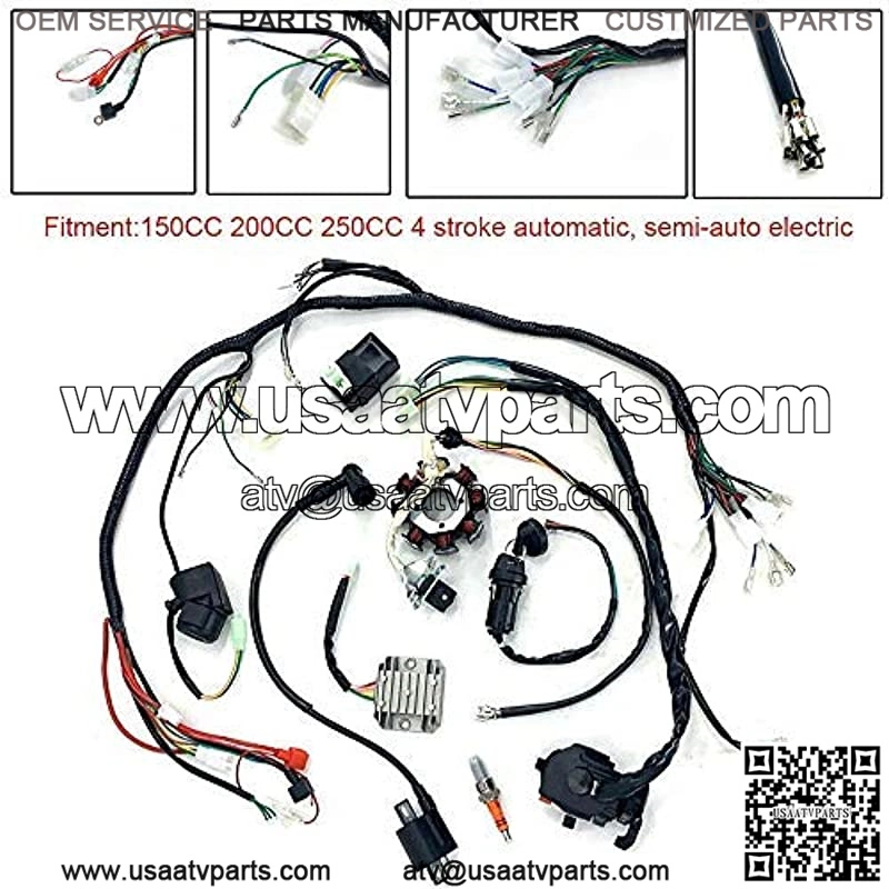 Full electrics wiring harness wire loom CDI stator for ATV QUAD 150/200/250CC.