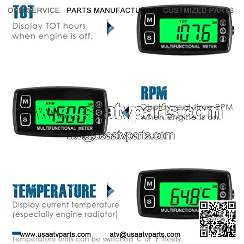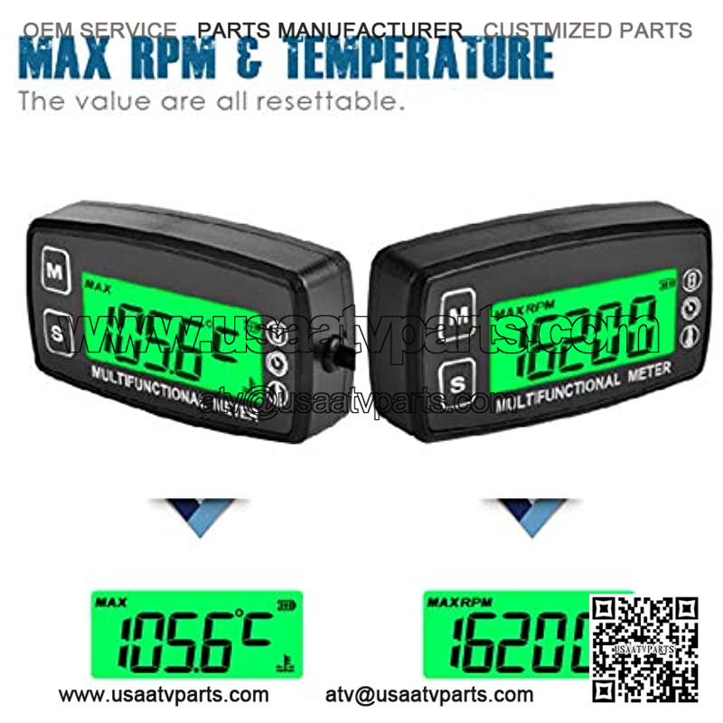 Engine Temp Gauge Meter, Hour Meter and Tachometer, Battery Replaceable for Garden Tractor Generator Chainsaw Outboard Marine ATV Jetski Motorcycle Snowmobile Compressor.