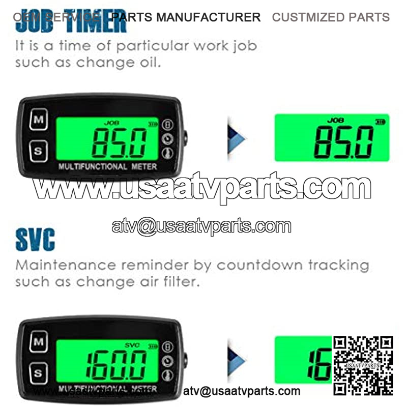 HOUR METER—-Help to track how many hours are the engine working;When engine is off, display shows total running hours of engine;TOT hours are non-resettable;JOB timer is measuring time of a particular work, it is resettable;Maintenance reminder for change oil,change air filter etc.,it is countdown timing.