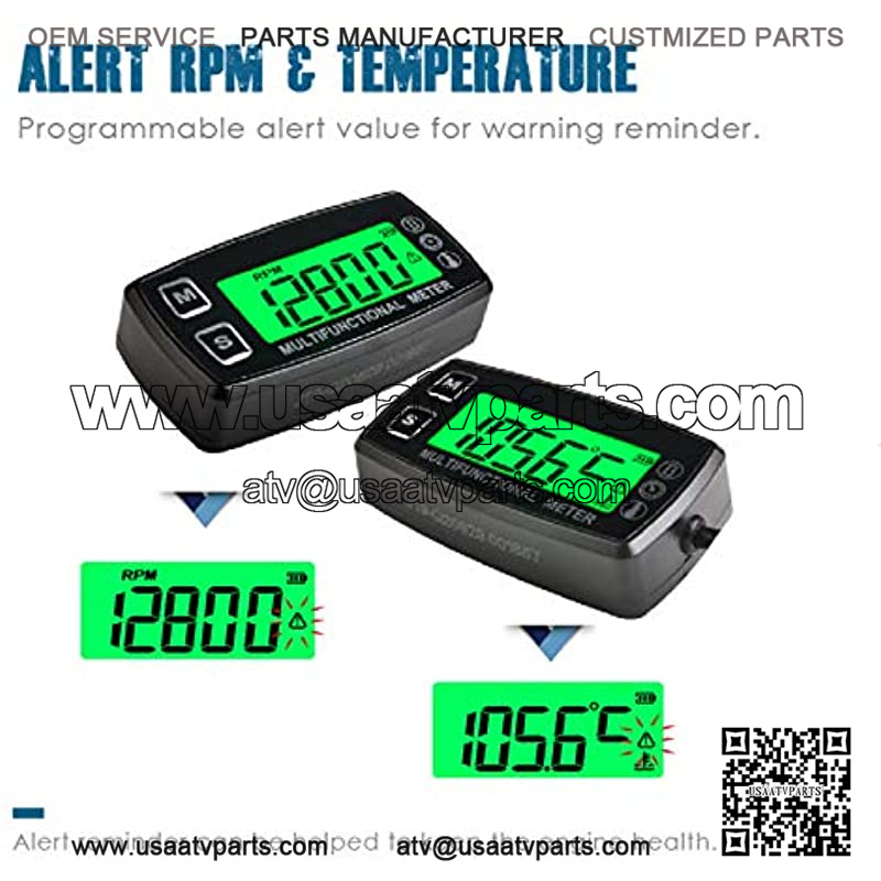 MULTIFUNCTIONAL HOUR METER—-Include Temperature Meter,Tachometer and Hour Meter, which help to keep the engine health.