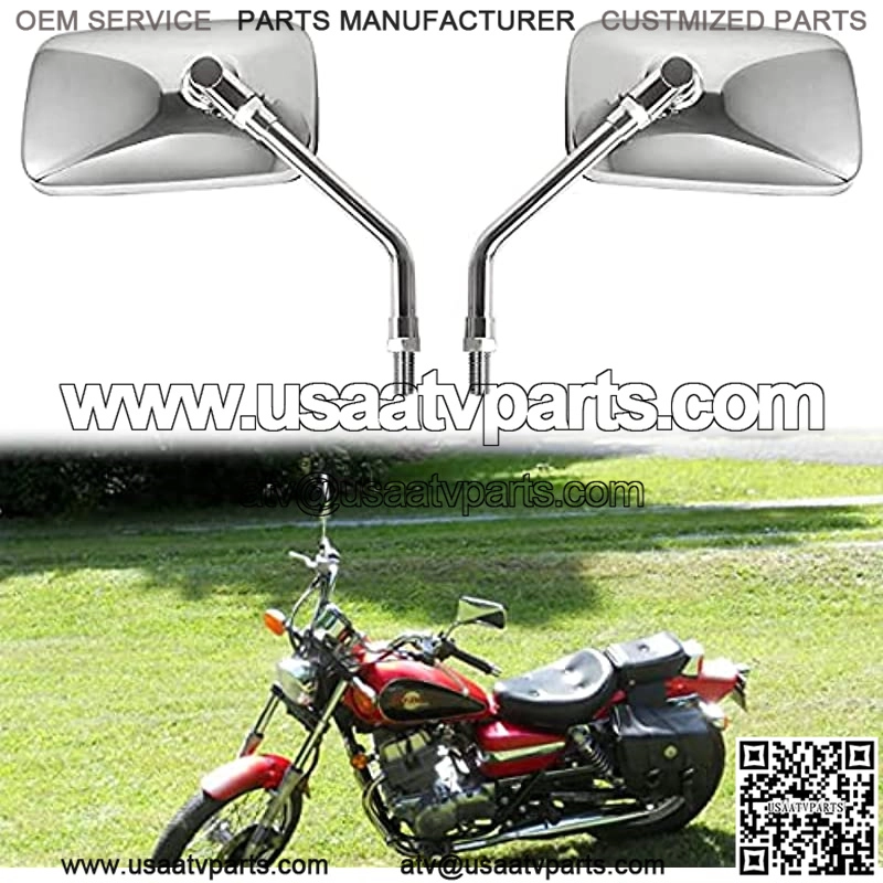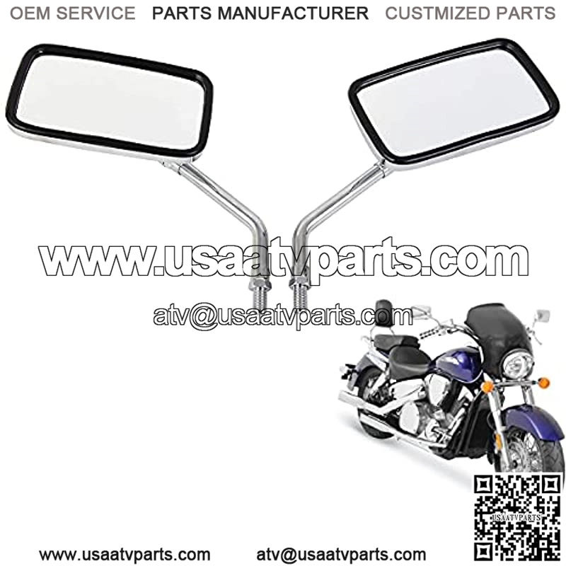 Tama?o del espejo: 125 x 70 mm. Tama?o del tornillo: 10 mm. Comprueba si se ajusta a tu motocicleta antes de realizar el pedido??mbito de aplicaci??n: los espejos cromados para motocicleta se adaptan a la mayor??a de motocicletas, Aprilia Honda, Kawasaki, Suzuki Street Bike y Cruiser Chopper, Street Bike Cruiser Adventure Touring Dirt BikeMaterial de alta calidad: carcasa de espejo de aleaci??n de aluminio plateado y varilla de aluminio cromadoVisi??n clara: el espejo retrovisor se puede ajustar hacia arriba, abajo, izquierda y derecha, proporcionando un amplio ??ngulo de visi??n y estabilizaci??n de imagenServicio al cliente amigable: Si encuentras alg??n problema durante el uso, no dudes en ponerte en contacto con el servicio al cliente de , haremos todo lo posible para resolver el problema para ti. Gracias por tu atenci??n y comprensi??n. Compatible con: Se adapta a la mayor??a de motocicletas/scooters/ATV con el punto de montaje de rosca derecha de 10 mm. Ten en cuenta que estos espejos de mot