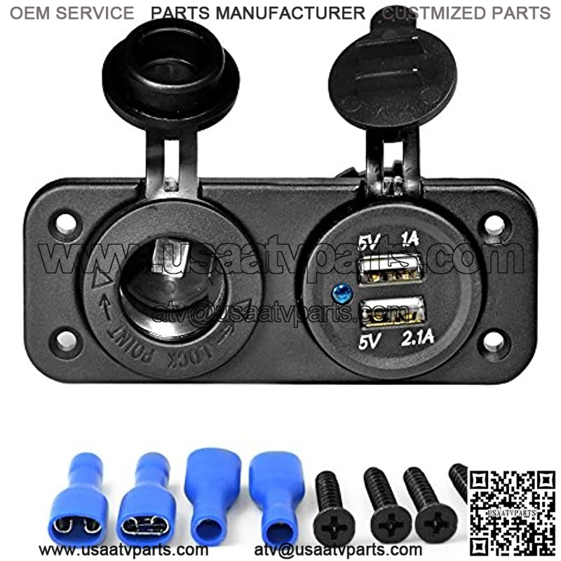 Easily installed in any 12V motorcycle, ATV, Boat or car Great add-on kit for motorcycle & ATV Input voltage: 12V-24V Waterproof Design,Waterproof Usb Cap Usb Socket I Power Output: Dc 5V 1A, 5V 2A