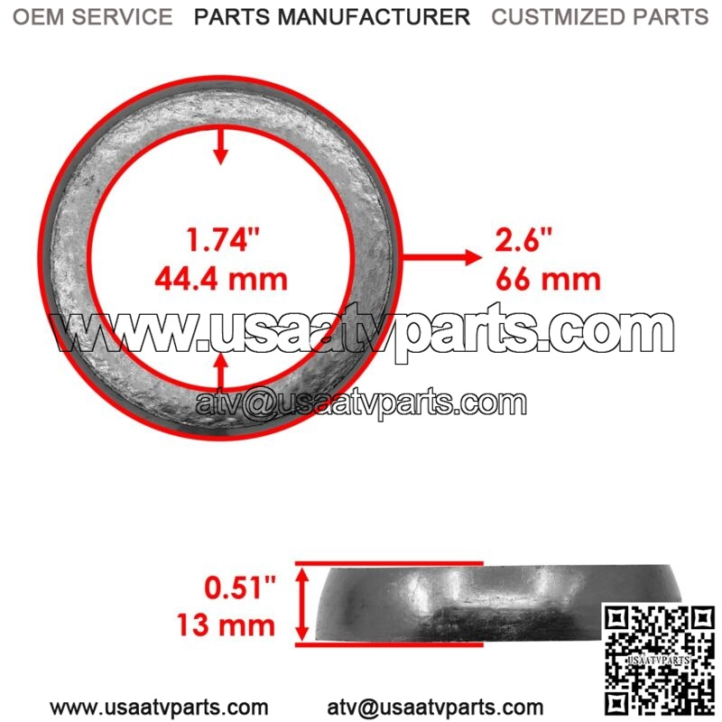 Premium Quality Replacement PartExhaust Pipe Gasket For Arctic Cat FIRECAT 600 2004 2005 2006For Models:FIRECAT 600 2004 2005 2006Order Includes:1 x Exhaust Pipe Gasket | 1612-323Inner Diamater: 44.4mm | 1.74″Outer Diameter : 66mm | 2.6″Thikness: 13mm | 0.51″**