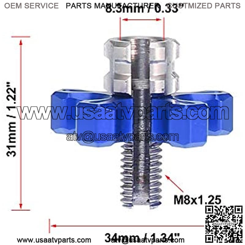 ??Dimension ??Thread Diameter: M8x1.25, Inner Diameter: 8.3mm / 0.33″, Size: 31x34mm / 1.22″x1.34″(L*W)