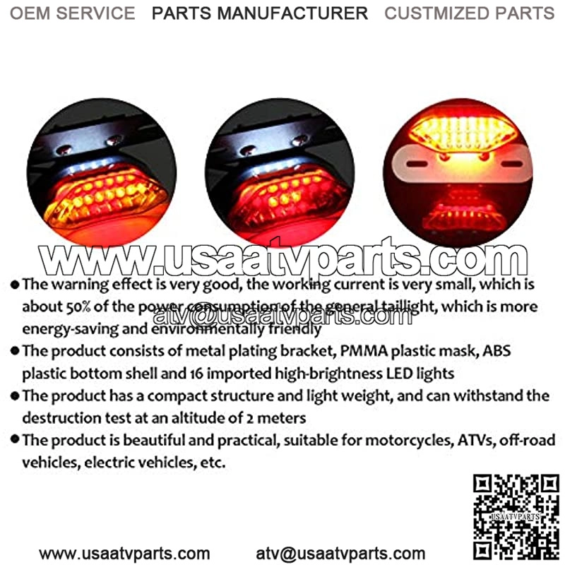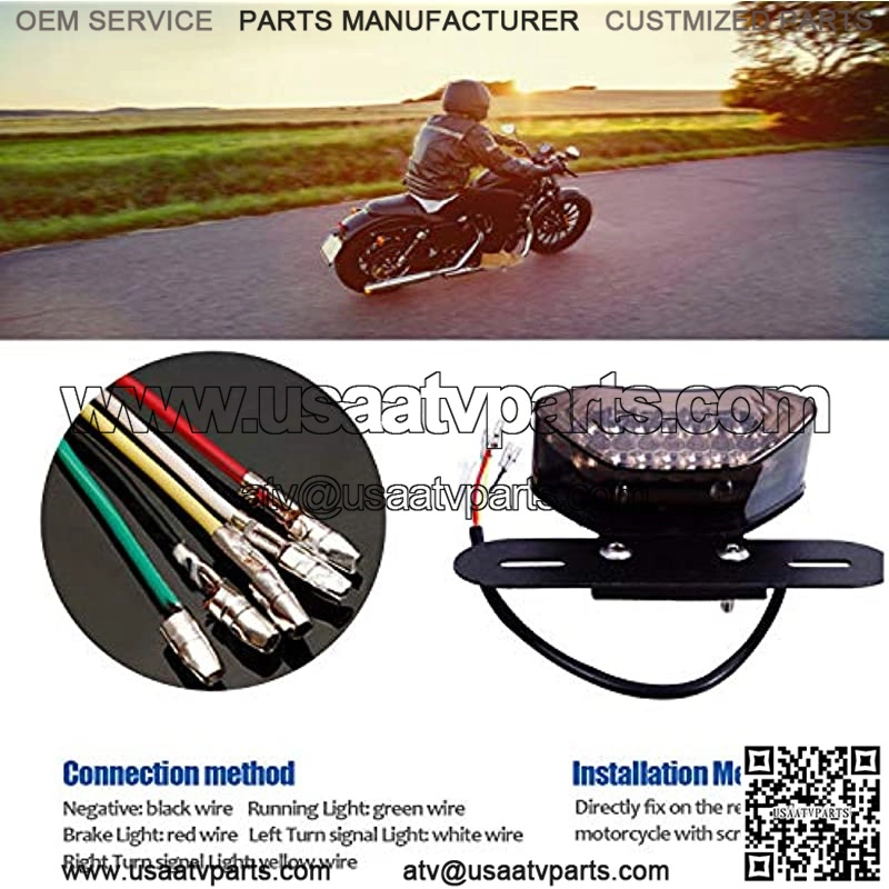 Premium ABS plastic lens and aluminum License Plate bracket LED built to long lasting durability,even over 50,000 hours using lifespan. Motorcycle Smoked LED Rear Tail Lights Driving Lights for License Plate Light