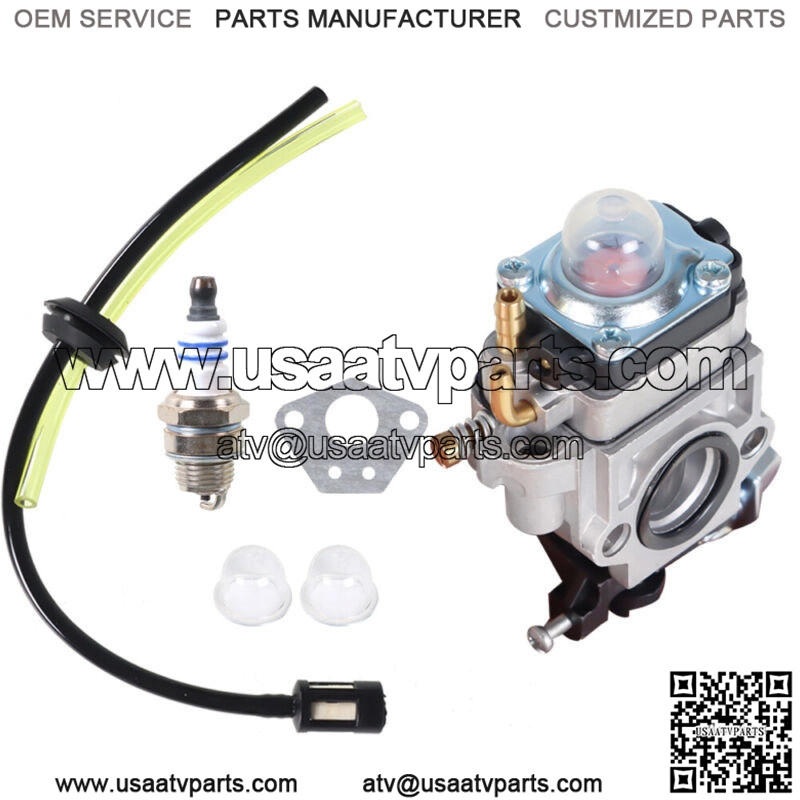 1 carburetor + 1 gasket + 2 primer bulb + 1 spark plug+ 1 fuel line kit (as picutred)
