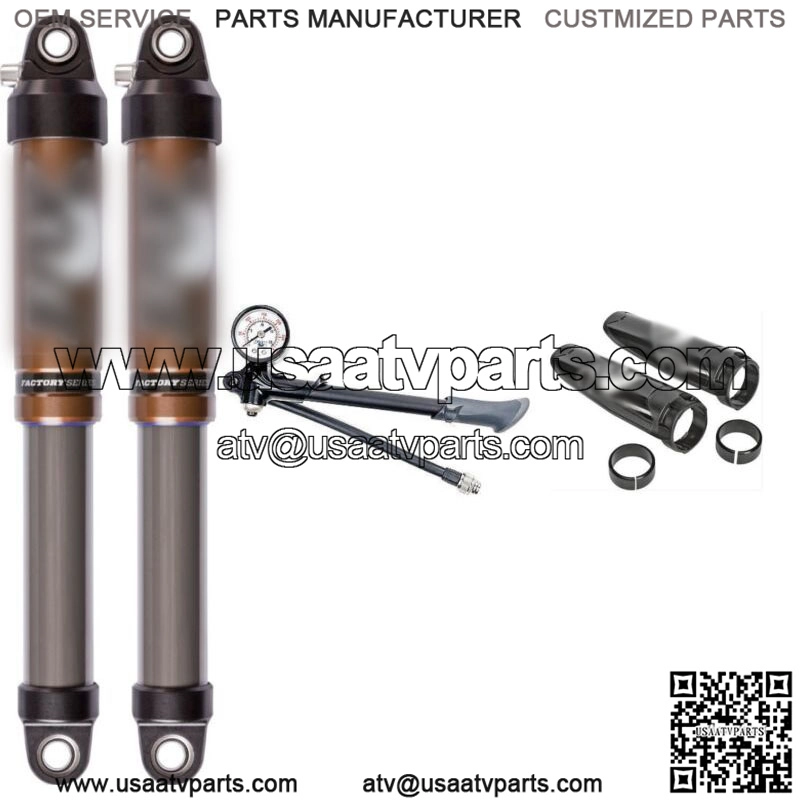 Factory Series Float 3 Front ShocksPart Number: 830-12-301Includes shock guards and air pumpWorks with stock a-arms, +1 a-arms, +2 a-arms, +3 a-arms (standard travel) Length: 15.83″The new Factory Series FLOAT 3 is the perfect ultra-lightweight suspension upgrade choice for riders who need to spend more time riding and less time tuning. With the infinitely adjustable air spring and custom factory-tuned damping, riders can dial in the perfect setting quickly and easily. The FLOAT 3??s Internal Floating Piston (IFP) separates the high-pressure nitrogen gas from the damping oil, making the ride consistent and fade-free. Genuine Kashima Coat and Chrome-silicon negative springs keep the stutter bumps and chatter to a minimum. Better performance plus hassle-free adjustability and reliability, equals faster rides and bigger smiles.Adjustments: Infinitely adjustable, progressive air spring.Features: Genuine Kashima Coat Samurai Sealing System (SSS) Aerospace-grade PTFE-lined spherical bearings High-flow velocity-sensitive damping Chrome silicone negative spring Fully rebuildable and revalveable Lose up to 7 pounds on your ATV (when replacing coil spring shocks) Easy access Schrader air cap* On some stock a-arm Banshee may require modification to the bottom a-arm shock mount to fit properly