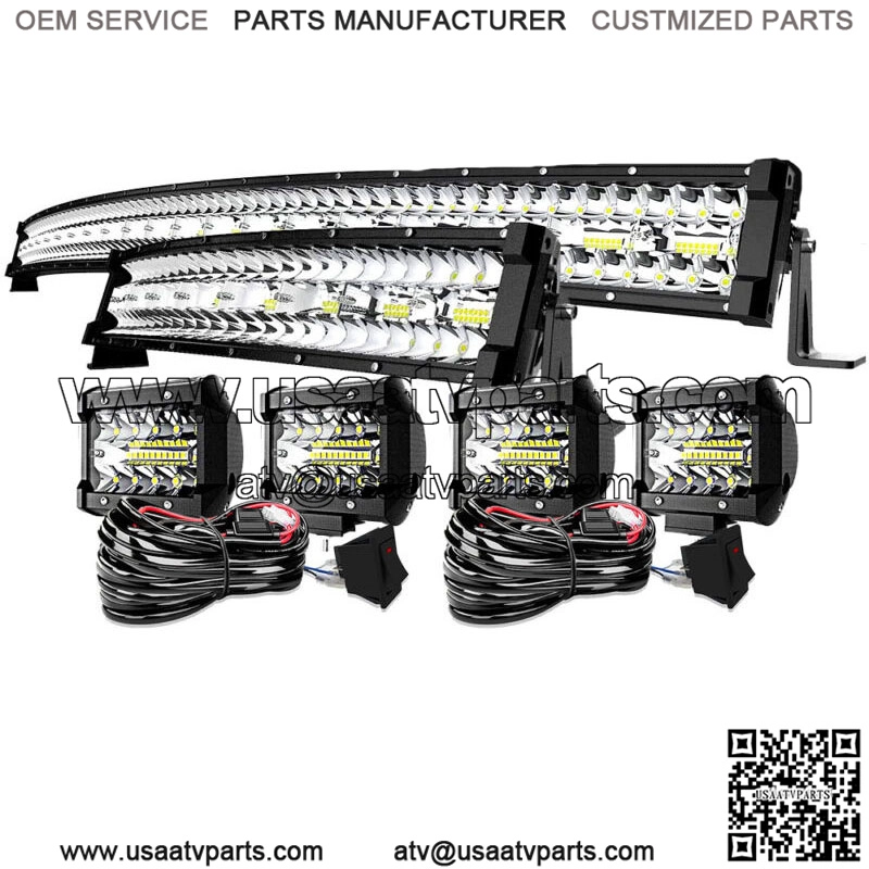 For Can-Am Maverick X3 Upper Roof 52″ Curved LED Light Bar +22″ +4″ Pods Lights