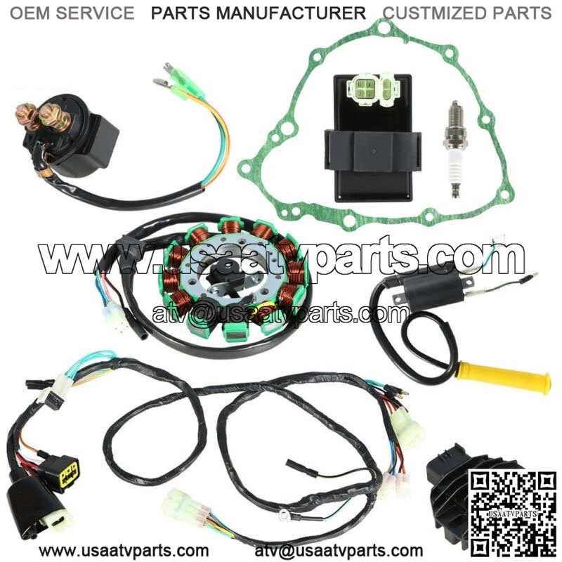 Note: Please Compare Your Unit With The Picture. 100% Brand New and High Quality. As shown in the figure, the product consists of Spark Plug,CDI,Ignition Coil,Starter Relay,Rectifier Regulator,Wire Harness,Stator and Gasket. OE Part Number: 30500-HN1-003??30700-KCZ-000??Ignition Coil??30410-HN1-003??CDI Box??31600-HM8-013??Rectifier Regulator??32100-HN1-000(Wire Harness)31120-HN1-A41??31120-HN1-003(Stator) Package:1 x Ignition Coil1 x Spark Plug1 x CDI1 x Starter Relay1 x Relay Rectifier1 x Wire Harness1 x Stator1 x Gasket This Ignition Assy fits for:1999 Honda Sportrax 400 TRX400EX 2×42000 Honda Sportrax 400 TRX400EX 2×42001 Honda Sportrax 400 TRX400EX 2×42002 Honda Sportrax 400 TRX400EX 2×42003 Honda Sportrax 400 TRX400EX 2×42004 Honda Sportrax 400 TRX400EX 2×4