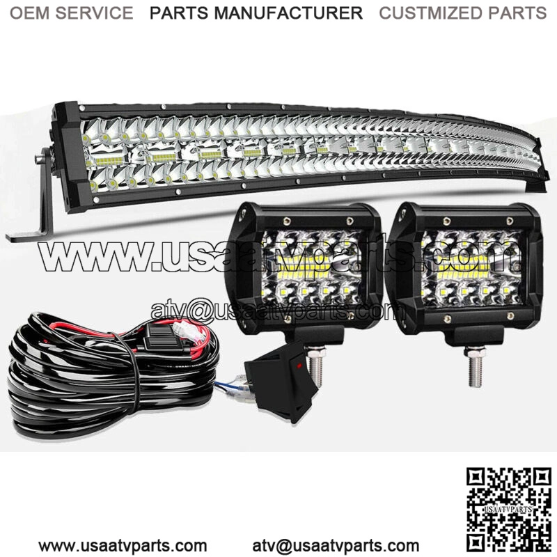 For Kawasaki Teryx 800 750 Mule 610 4010 Roof 50″ LED Curved Light Bar+ 4″ Pods (For: More than one vehicle)