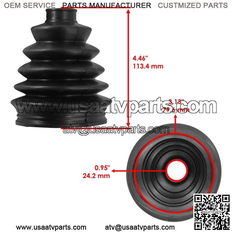 Premium Quality Replacement PartFront Left & Right CV Axle Inner Boot SetFor Honda Models:Talon 1000X-4 SXS10S4 2020-2022Order Includes:2 x CV Inboard Boot | 44230-HL6-A01Width: 113.4 mm | 4.46″Inner Diameter: 24.2 mm | 0.95 “Outer Diameter: 79.6 mm | 3.13 “2 x Inboard Boot Band | 42226-HL4-F42 x Pack of CV Grease**