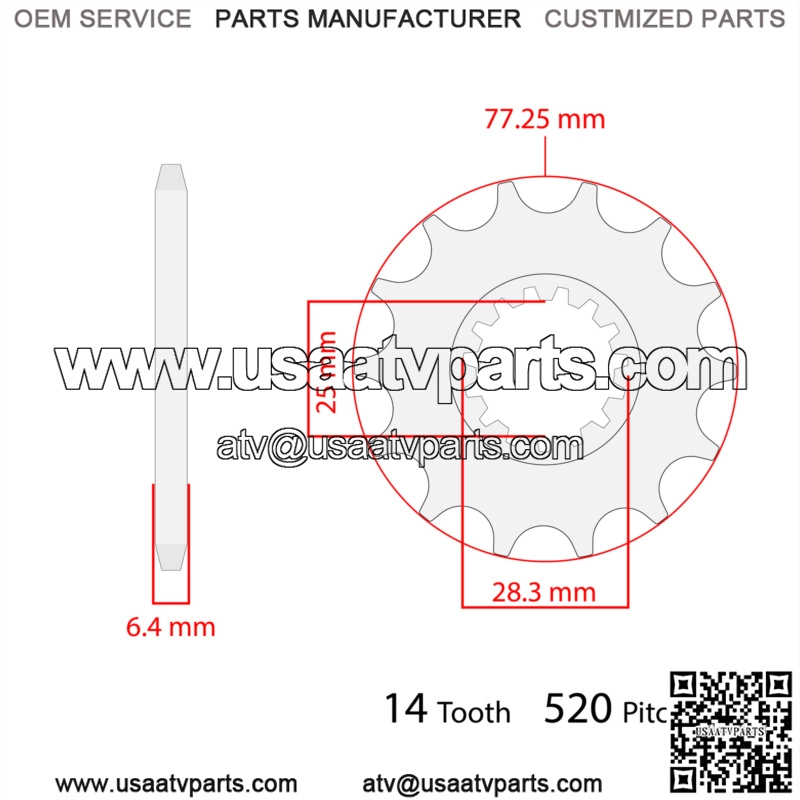1. Front Sprocket 14 Teeth / Material: Steel