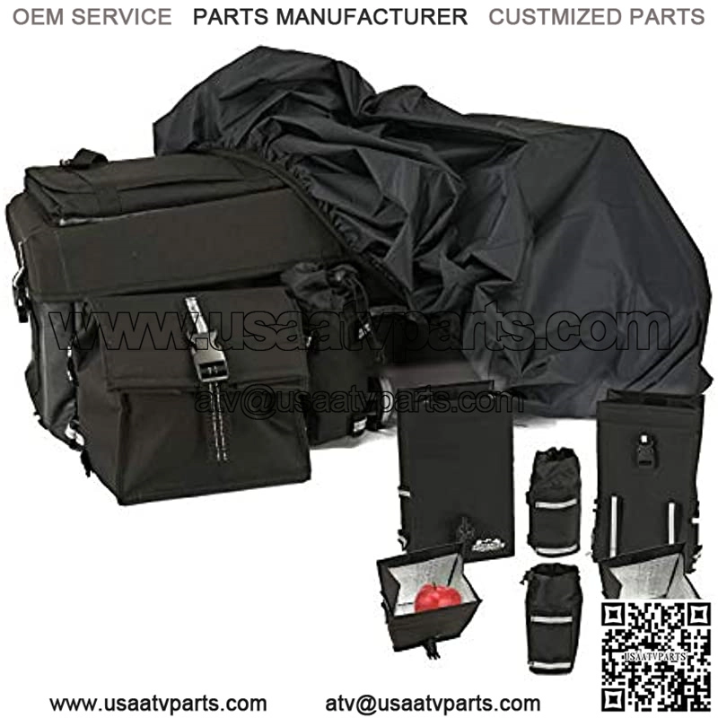 Gear ATV/Quad Rear Rack Bag with Rain Cover and Insulated Cooler Bags, Black