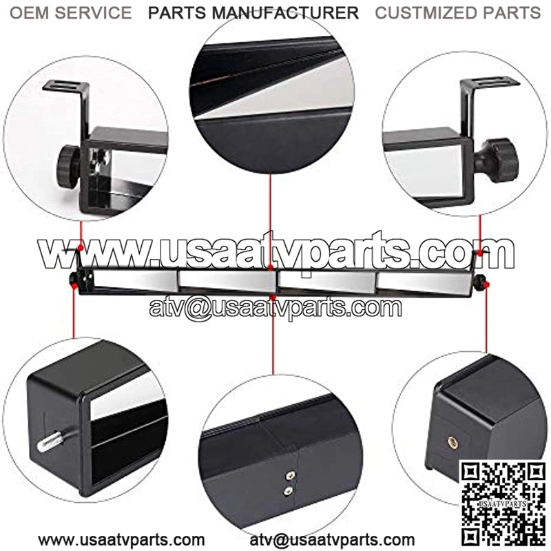 4 Panel Interior Rear Mirror, consists of 4 clear glass mirrors, strategically positioned to maximize your rearward view,no worry about the blind spots any more; Mirror Size:35.8″L x 1.7″W x 2.5″H ,Fits All Golf Carts,like EZGO, Club Cars and Yamaha,also Suitable for many types of motorsports, ATV’s and other trucks; This 4 Panel Mirror offers a wider angle vision than 5 panel mirror, It provides a clear and undistorted image,much improve your driving safety; Includes complete hardwares ,adjustable mounting brackets and english instruction,which is easily installed onto your cart roof or roll cage,and Without Vibration & Fall; 2 Installation Methods Available:We’ve added one extension bracket in the packet in case the original bracket doesn’t fit your carts,so don’t worry about the mirror’s compatibility.