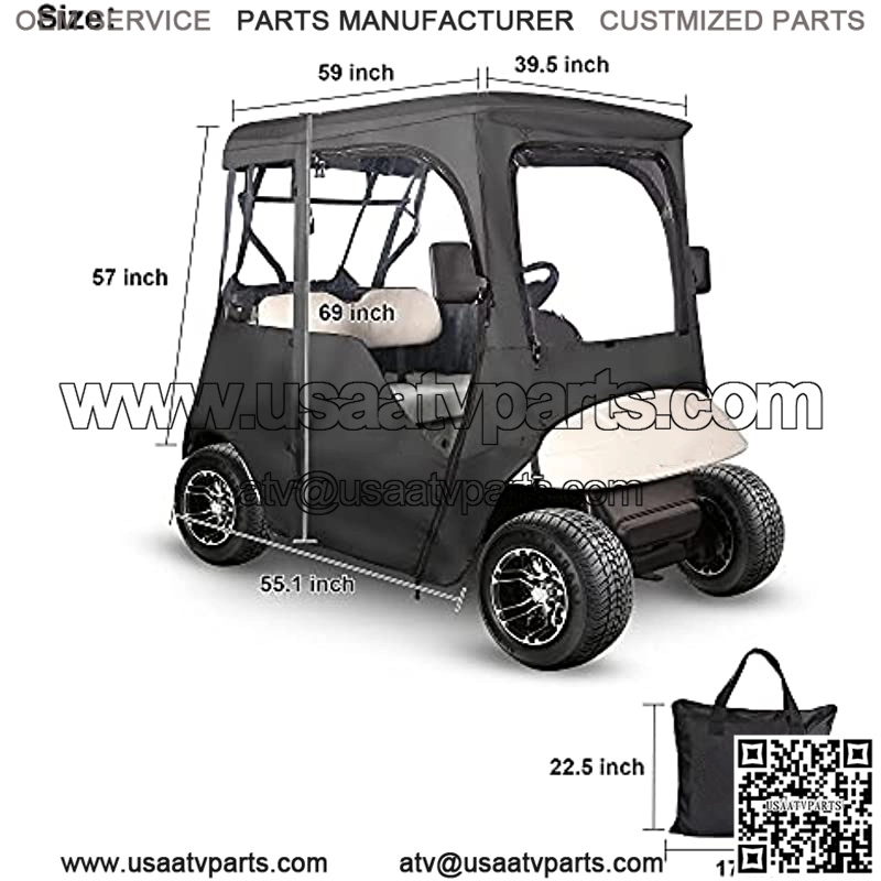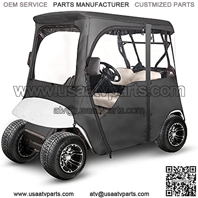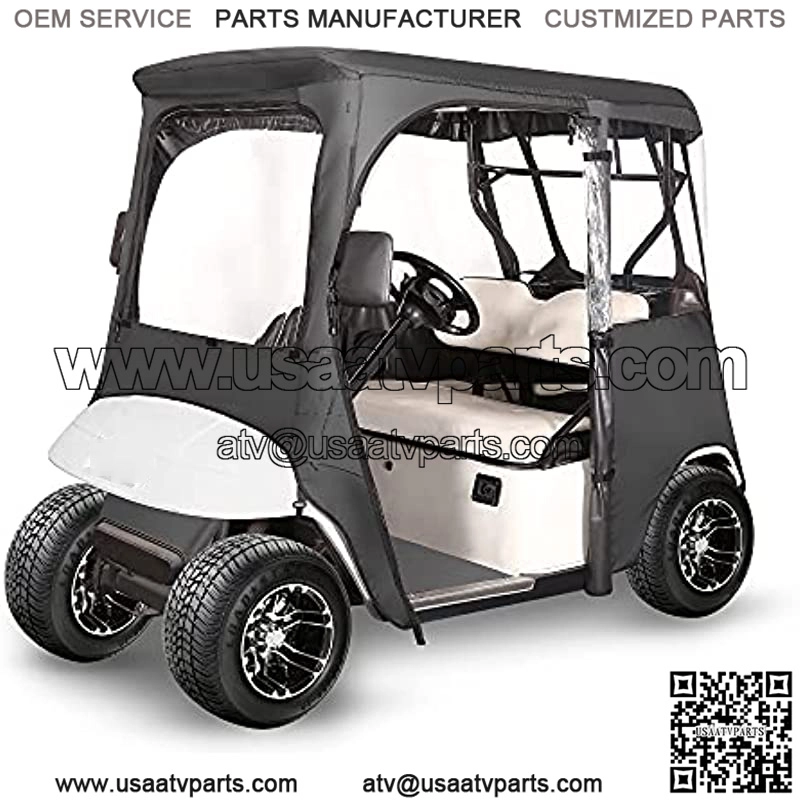 Golf Cart Deluxe Enclosure for EZGO TXT 2 Passenger, 4-Sided Clear PVC Window Rain Cover with Zipper Entry, Black