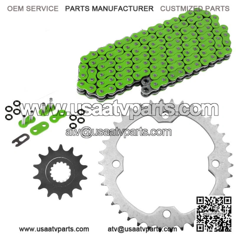 Green O-Ring Drive Chain & Sprockets Kit for Yamaha Raptor 700 YFM700R 2006-16 (For: Yamaha Raptor 700)