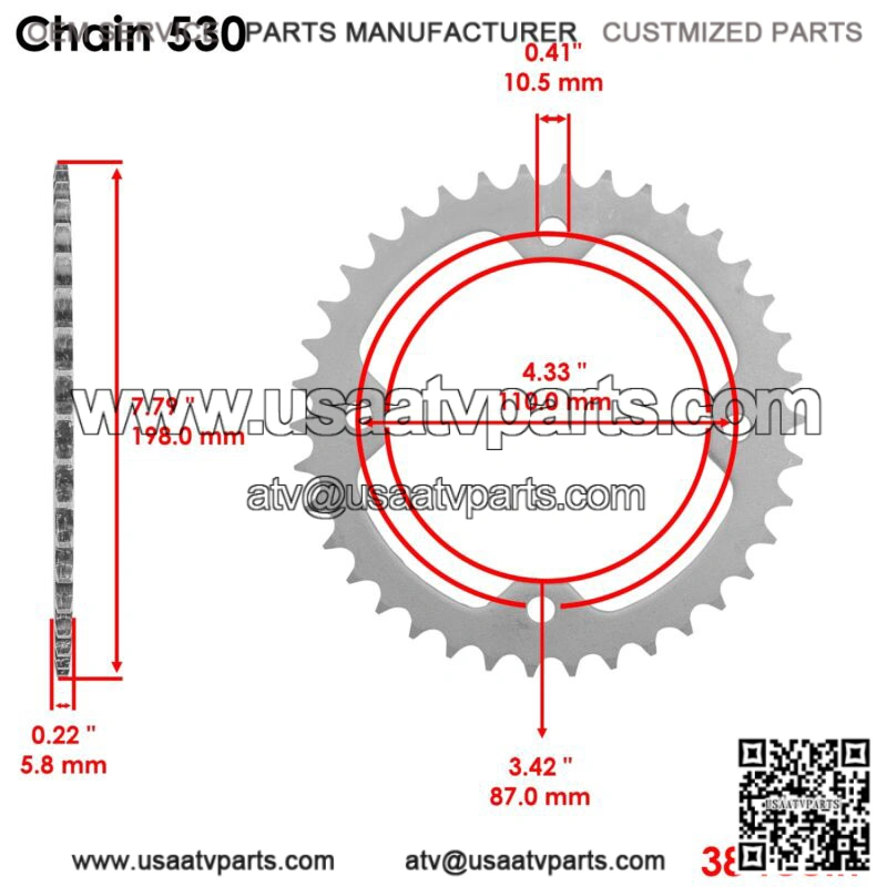 3. Rear Sprocket 38 Teeth / Material: C49 High Carbon Steel