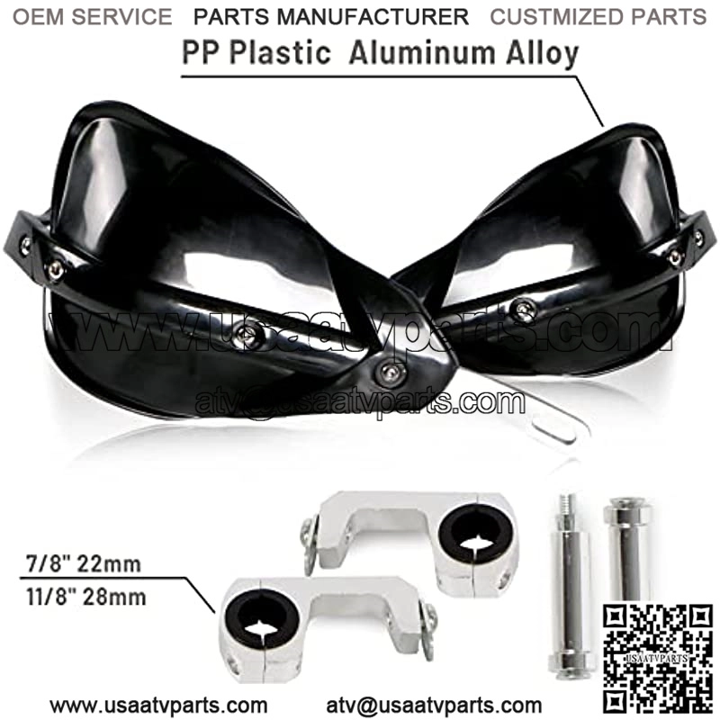 Aftermarket handlebar Hand Brush Guards for off-road and dual-sport motorcycles Hand Guards Can Protect Your Hands From Brush Rocks Mud And Cold wind and reinforced to protect your motorcycle in the event of a crash Handguards Are With Enough Room For Brake Cables Control And Other Devices Material: PP Plastic and Aluminum Alloy Fit All Handlebars Range 7/8″ 22mm and 1 1/8″ 28mm