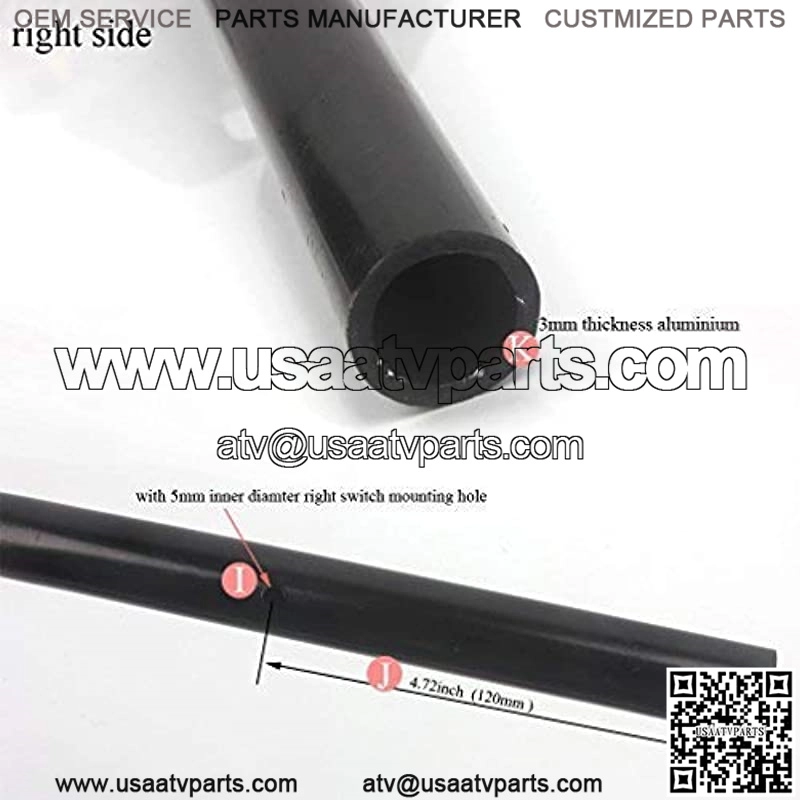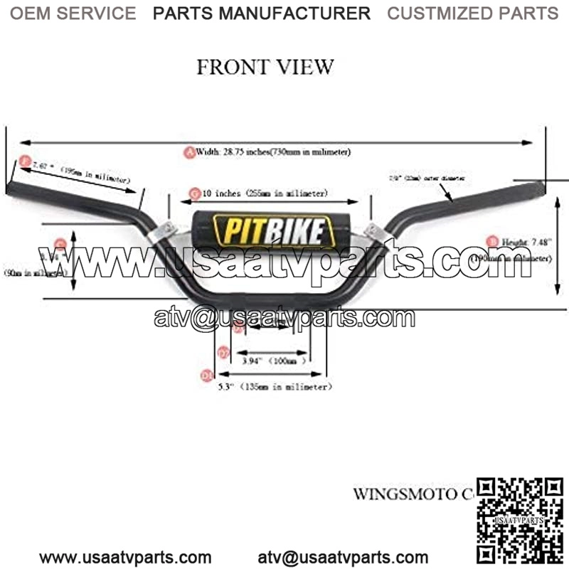 This is a 7/8″ dirtbike handle bar with foam pad and extra 304 stainless steel bolts.There is a 5mm inner diamter right switch mounting hole. Please look at picture for detail measurements.