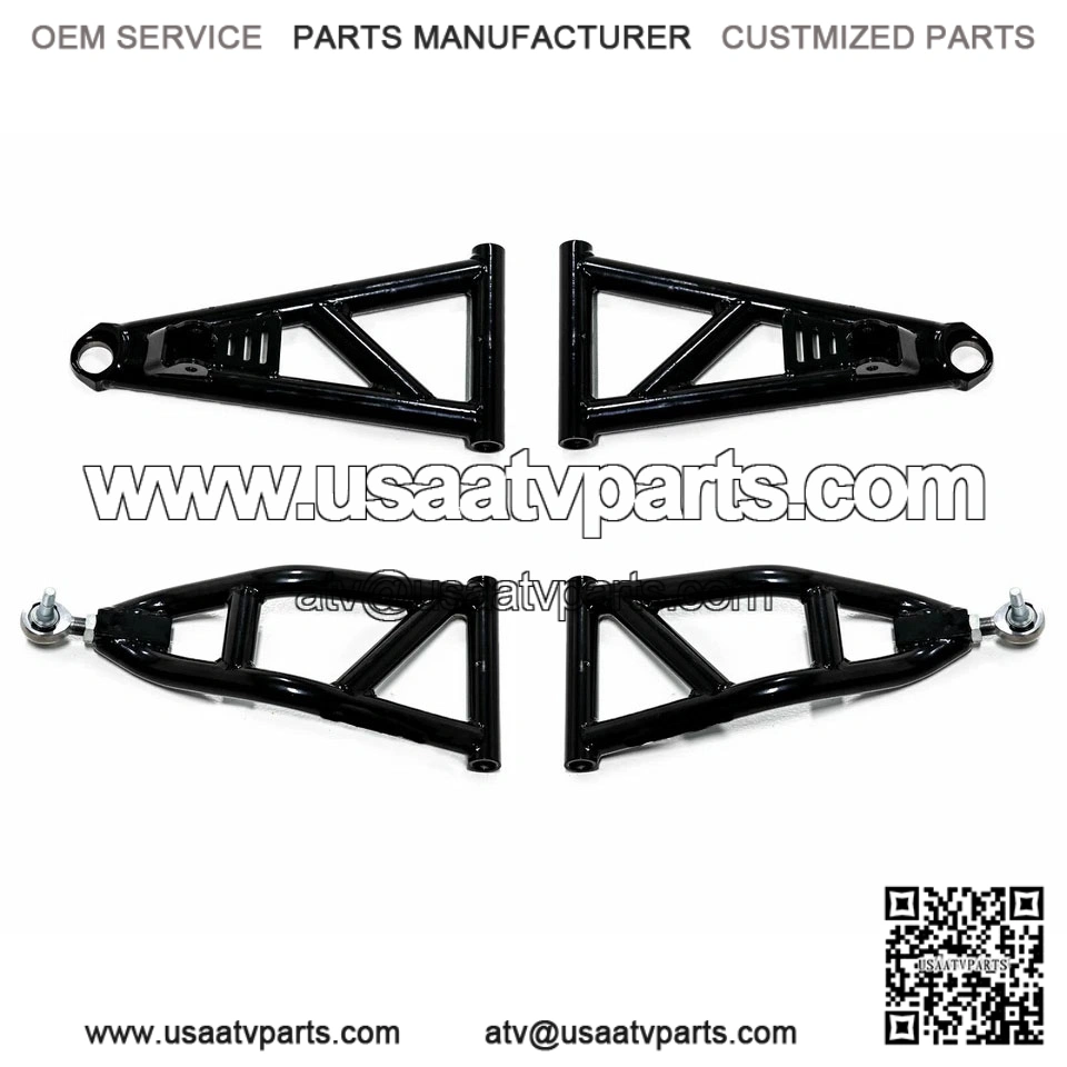 We know what you want??you want big tires and a ride that doesn??t quit. With 1.5?? Forward Offset A-Arms installed on your CFMOTO UForce 1000, you can load up with big tires and suspension that doesn??t crumble at the first sign of trouble. They give you clearance for up to 30?? tires without a lift. Our high-clearance A-arms are made with heavy-duty 1.5?? diameter steel tubing, chromoly adjustable pivot blocks, and chromoly ball joint housings. The arched high clearance design gives you extra ground clearance over stock and the 1.5?? forward offset gives you a longer wheelbase for increased stability, better hill climbs, and better performance overall.