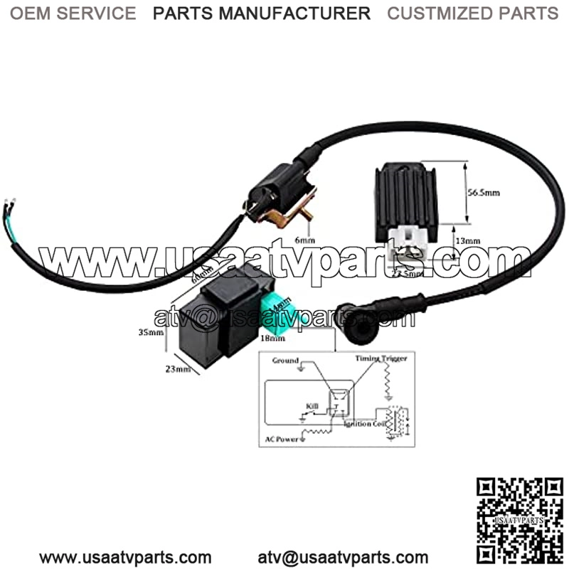 5 Pin AC CDI BoxCoil fits 50cc 70cc 90cc 110cc 125cc ATV Scooter Moped Go kart and Dirt bikeCDI Fits 50-125cc scooters, mopeds, ATVs, go karts with 4 stroke engineRegulator Rectifier Fits Scooter, Moped, ATVs, Gokarts, Buggie with GY6 Motor From 50cc to 150cc.For most Chinese brand, like TaoTao, Buyang, SUNL, Roketa, Lifan, AIM-EX, Kazuma, Coolsports, etcPackage Included: 1 x 5 Pin AC CDI + 1 x Ignition Coil + 1 x Regulator RectifierPlease compare pictures and specifications with your old part befor order , thanks .Product Description Brand New Ignition Coil CDI UNIT Rectifier Regulator Fit 110cc 125cc 140cc PIT PRO Bike Trail Bike Dirt Bike Quad ATV Dune Buggy Includes: 1 X Ignition coil 1 X CDI UNIT 1 X Rectifier regulator Fits 50cc 70cc 90cc 110cc 125cc 140cc Engine LENGTH OF COIL LID:around 45cm (450mm) Plaese check picture to verify the fitment.