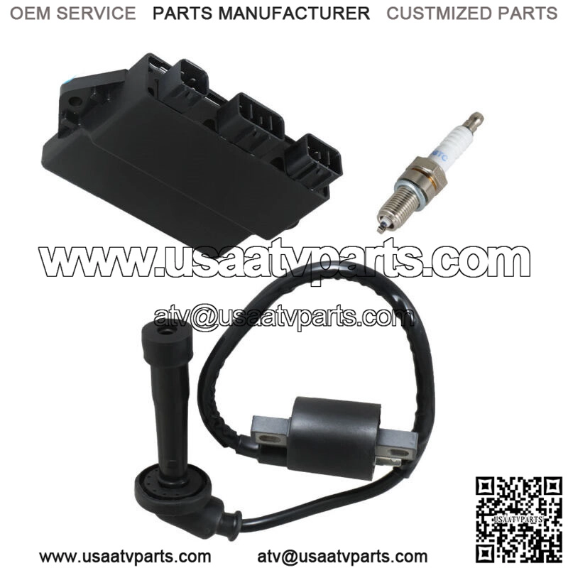 Fitment :This Ignition Coil Spark Plug & CDI Box fits the following models For:Yamaha ATV 2002 GRIZZLY HUNTER EDITION – YFM660FHP Yamaha ATV 2003 GRIZZLY 660 REAL TREE HARDWOOD HUNTER – YFM660FHRHYamaha ATV 2003 GRIZZLY 660 WETLANDS HUNTER EDITION – YFM660FHR Yamaha ATV 2002 GRIZZLY 660 – YFM660FP Yamaha ATV 2003 GRIZZLY 660 – YFM660FR Yamaha ATV 2002 GRIZZLY 600 METALLIC SILVER – YFM660FPS Yamaha ATV 2003 GRIZZLY 660 4X4 METALLIC TITANIUM – YFM660FRGYDescription??-Note:Please Compare Your Unit With The Picture. -100% Brand New and High Quality -OE Part Number: 5KM-85540-00-00(CDI)5KM-85540-00-00,3KJ-82310-10-00(ignition coil)Package Include: 1 x Ignition Coil1 x Spark Plug1 x CDI Box??W/o Product Instruction Notes??-If You Are Not Sure The Item 100% Fit For Your Vehicle Before Your Purchase.-Please Allow 1-3CM Differs Due To Manual Measurement.