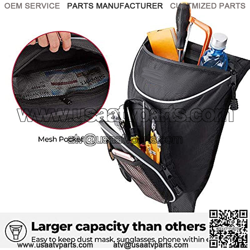 Center storage bag compatible with rzr won’t take up any valuable place, just install between two seats near your shoulder. You and your passenger can catch the stuff easily, and won’t avoid your driving experience. A great place to keep sunglasses, tire gauges, cell phones, gun, binoculars.