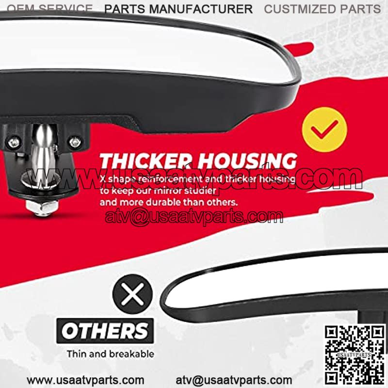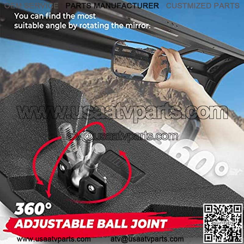 Adjustable Rear View Angles: By using a ball-joint construction, it is simple to adjust the UTV convex mirror for a wide-angle vision behind, and by tightening two screws on the housing, it can be secured against vibration.