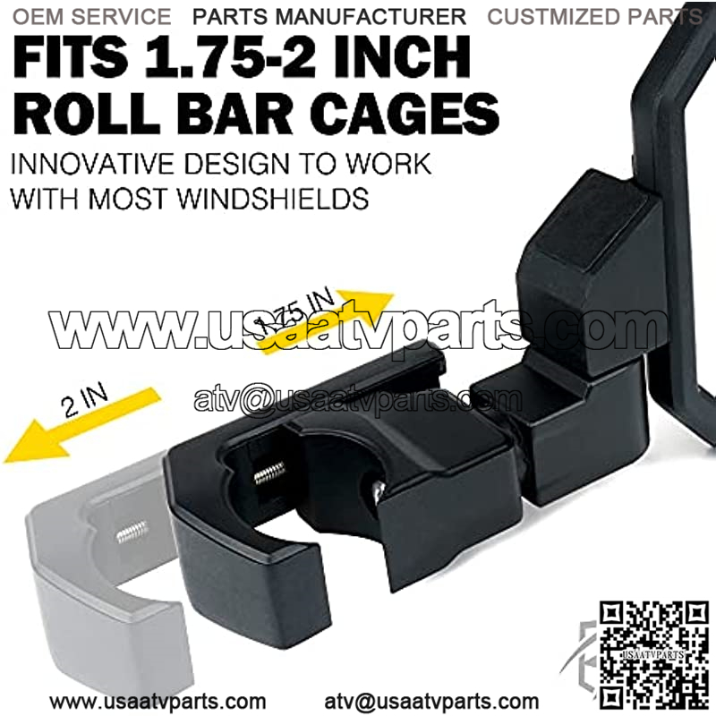 Adjust to any desired angle.Our specially designed can rotate horizontally and vertically.Built with high-quality aluminum alloy, for rugged durability.Tough HD glass provides a wide viewing range and clear image stabilization.Locks firmly to keep a clear image and the mirrors from sliding.Fits 1.75″-2 inch roll bar cages. Also works with most windshields.